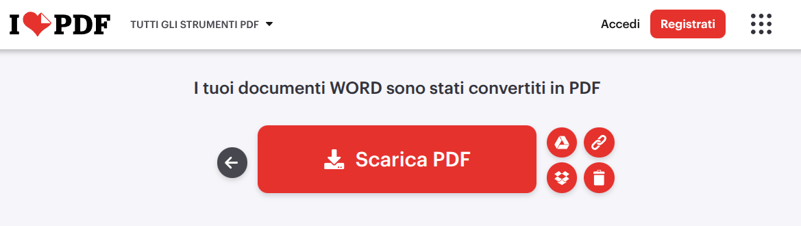 Aprite questa pagina: https://www.ilovepdf.com/it/word_a_pdf