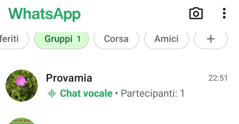 Una chat vocale è diversa da una telefonata di gruppo (che si può attivare nei gruppi piccoli premendo l’icona della la cornetta in alto, accanto all’icona della telecamera).