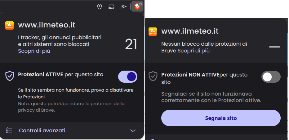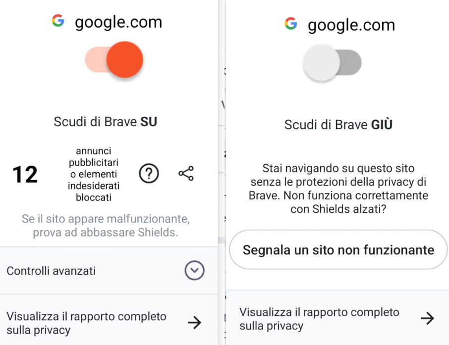 E poi “spostate” l’interruttore per “abbassare” lo “scudo” di Brave.
