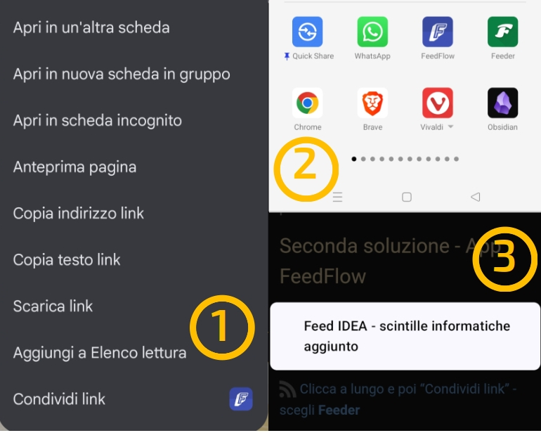 - ti arriva un breve messaggio: Feed IDEA - scintille informatiche aggiunto → Fatto!