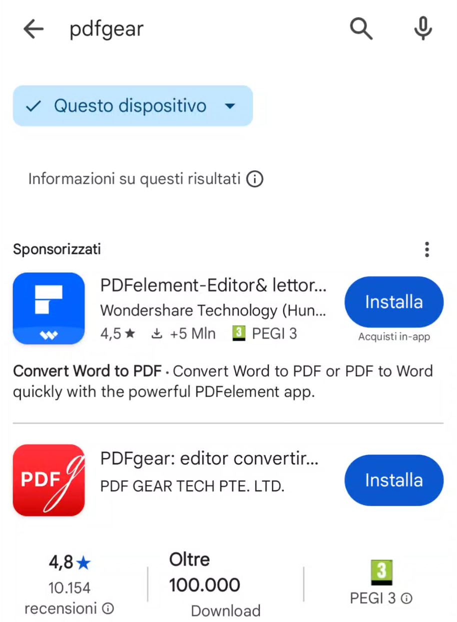 Cercate PDFgear in Play Store: