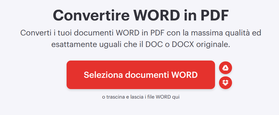 Aprite questa pagina: https://www.ilovepdf.com/it/word_a_pdf