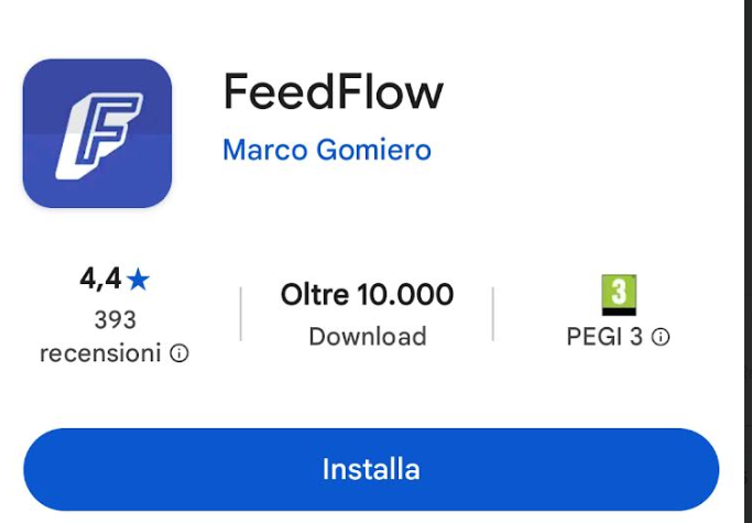 La trovi su Google Play (se invece hai un iPhone, su Apple Store) cercando “Feedflow”: