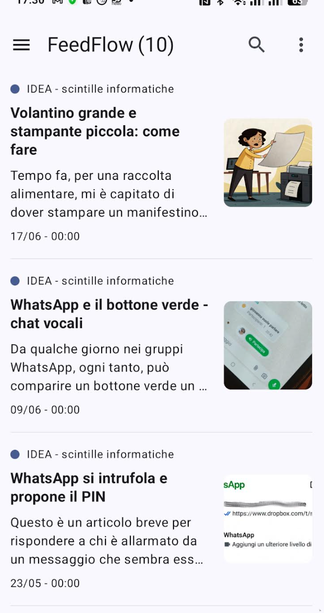 - ti arriva un breve messaggio: Feed IDEA - scintille informatiche aggiunto → Fatto!