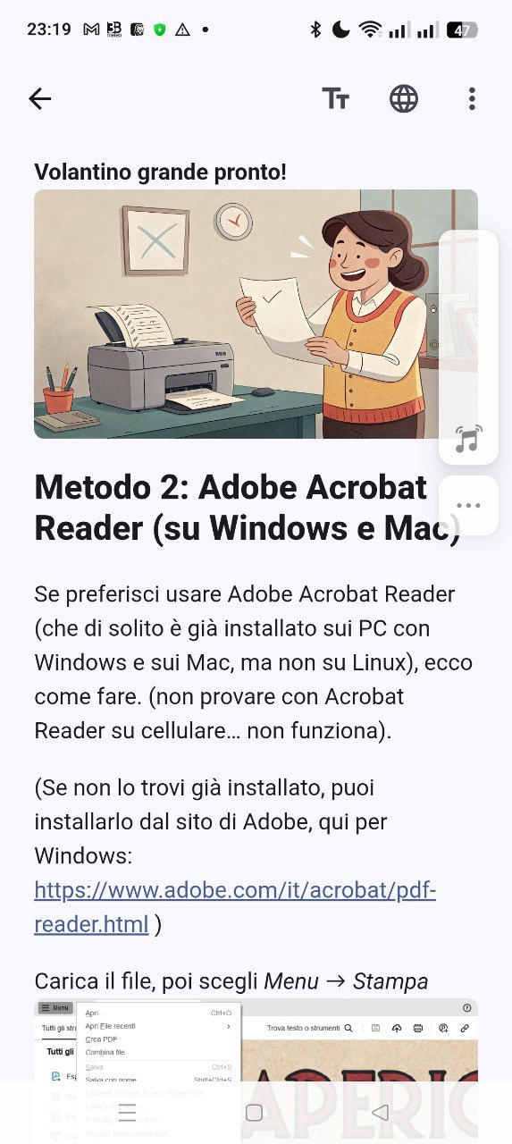 Cliccando poi l’icona del mondo in alto, aprirai l’articolo dal sito nella tua app di navigazione (Chrome, Firefox, Safari etc).